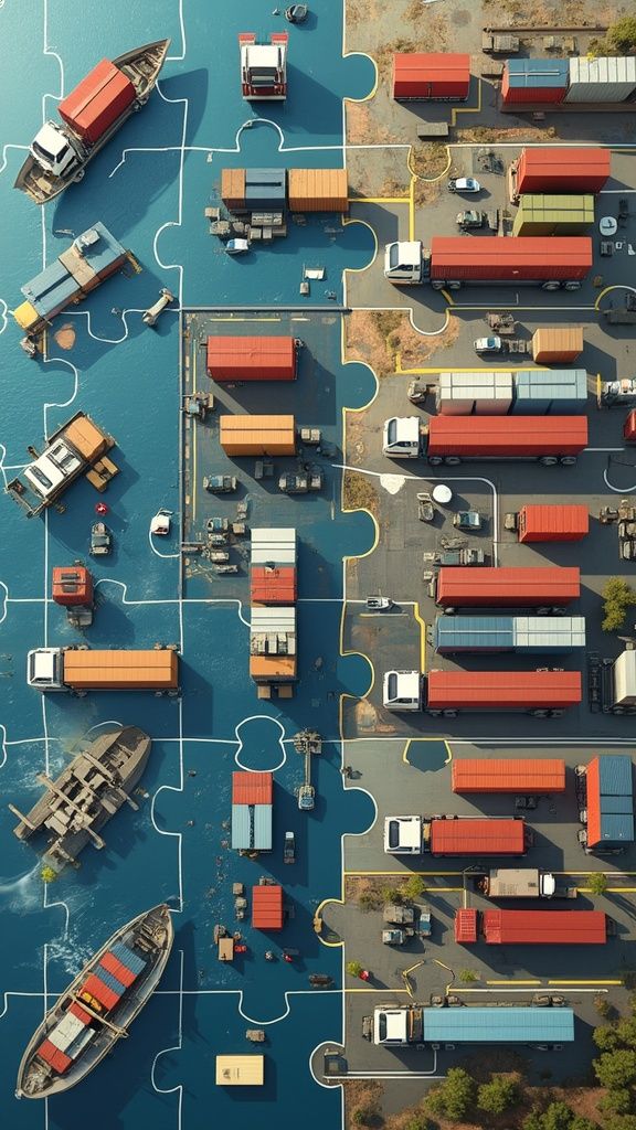 عند وصول الحاوية إلى الميناء الوجهة، تُنقل لمستودع إلغاء التجميع، حيث يتم فصل الشحنات وتسليمها للمستوردين.